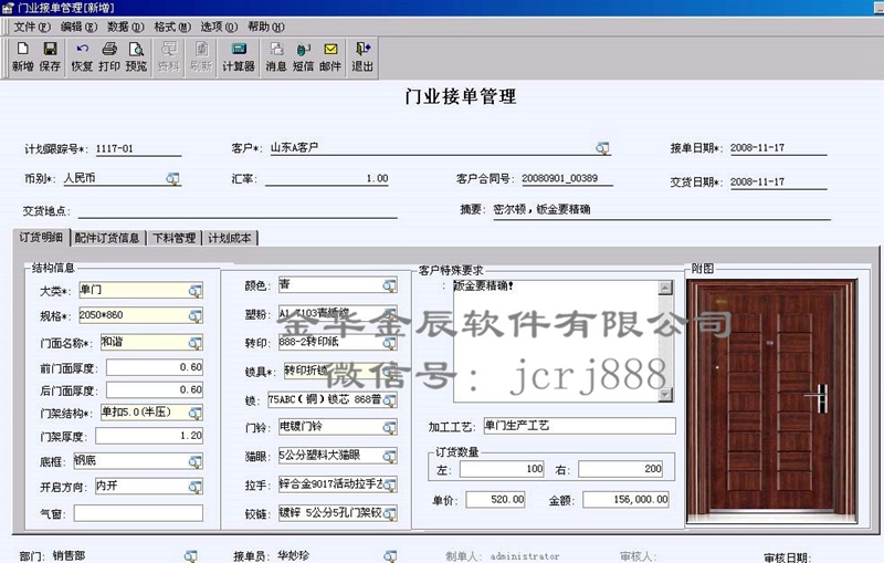 金辰門(mén)業(yè)ERP專(zhuān)版經(jīng)過(guò)10+年的發(fā)展,支撐大、中、小型門(mén)企的業(yè)務(wù)應(yīng)用,支持所有門(mén)類(lèi)品種。