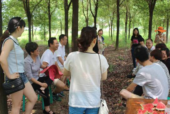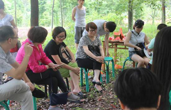 我們在小樹林里準備了桌椅,低碳又環(huán)保,總監(jiān)們相互交流積極愉快