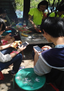 在燒烤過程中,金辰軟件工作人員和客戶朋友進行了熱烈的互動,主要活動有搶紅包和體檢金蝶移動應用有獎問答。