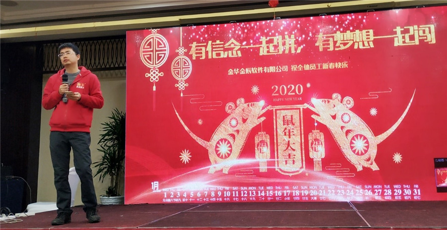 李家駒李總說公司從創(chuàng)業(yè)之初的艱辛痛楚,到今天的良性增長,從最初的無人可用,到現(xiàn)在的人才濟濟,金華金辰走過了16年,迎來了第17個年頭;我們從默默無聞到聲名鵲起,離不開每一位金辰家人的辛勤付出,在這里非常感謝各位家人,也堅信在2020年你們會更加出色更加優(yōu)秀。
