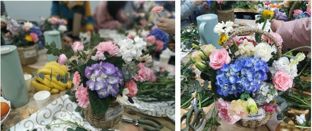 活動第二部分為插花沙龍。我們特邀了花藝?yán)蠋煬F(xiàn)場講解花藝知識,手把手傳授插花技巧。
