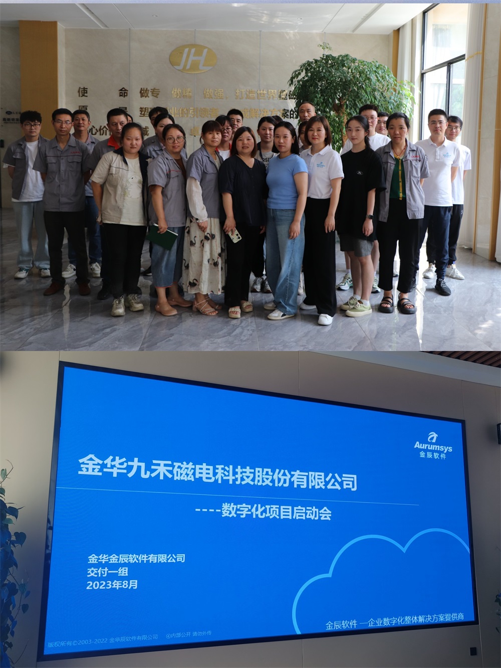2023 年 8 月16 日,金華金辰軟件有限公司(以下簡稱金辰軟件)與金華九禾磁電科技股份有限公司(以下簡稱九禾磁電)共同舉辦的數(shù)字化啟動會在金華磐安圓滿完成。這次會議標(biāo)志著九禾磁電數(shù)字化轉(zhuǎn)型邁出了重要的一步,同時(shí)也展示了金辰軟件助力企業(yè)數(shù)字化升級的強(qiáng)大實(shí)力。